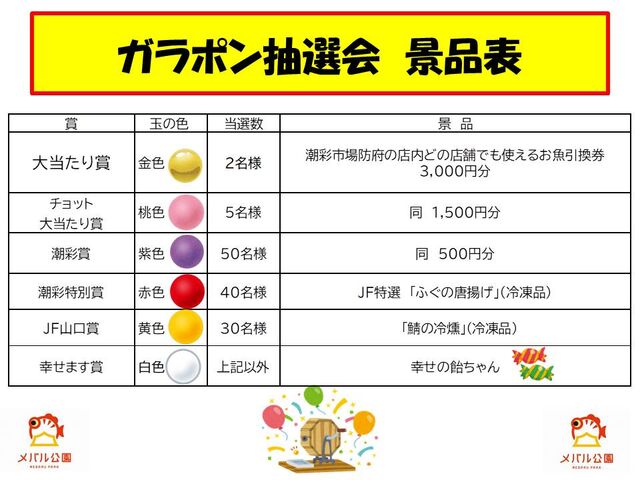 ※景品が無くなり次第、終了となりますが、概ね午後4時30分頃まで。