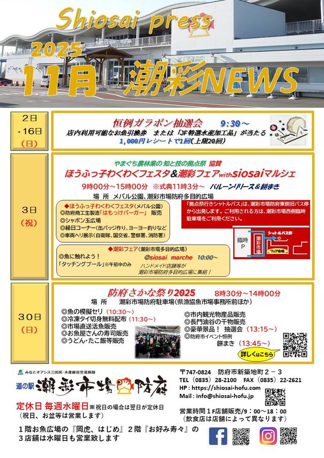 さて、2025年も残り二ヶ月となりました。潮彩市場防府は元気に営業致しますので、変わらぬご愛顧の程よろしくお願い致します。