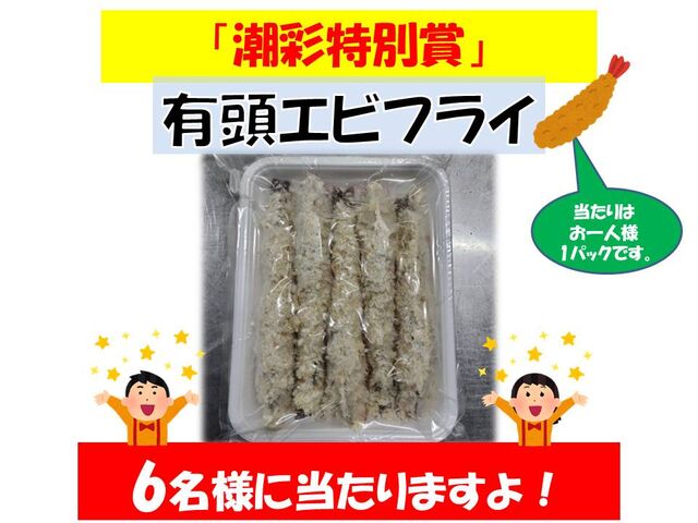 今回は特別賞として「エビフライ」「赤魚の開き干し」「シマホッケ半身干し」の冷凍品をご用意していますので、ぜひ当ててくださいね‼