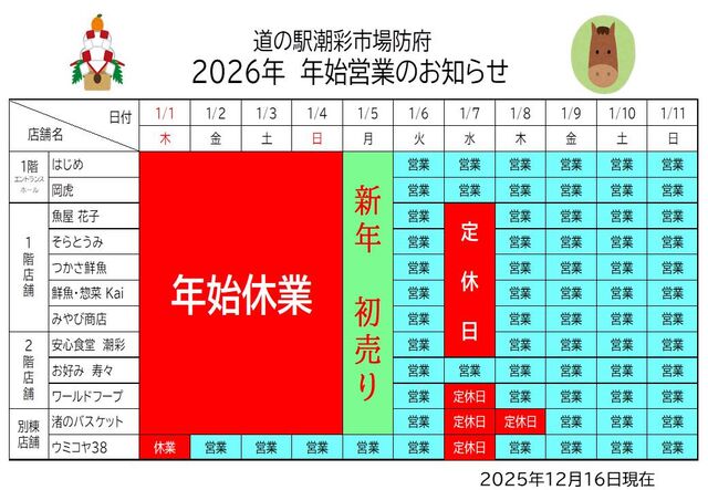 年始営業案内(12月16日現在)