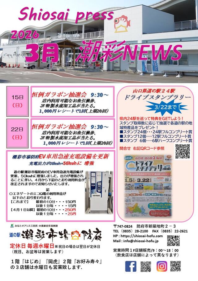 ≪参加要領≫ 潮彩市場防府内の全店舗のレシート1,000円で1回抽選